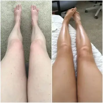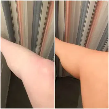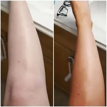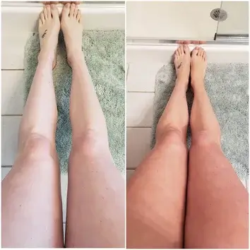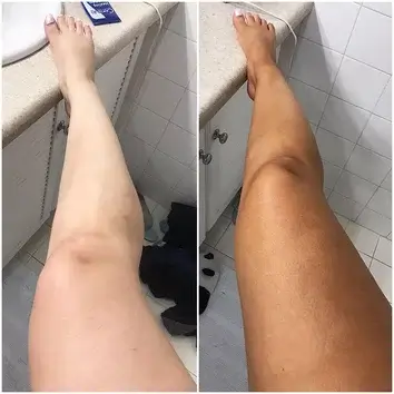 Benutze einen Bräunungshandschuh und trage das HAIR JAZZ Self-Tanning Mousse nach dem Schütteln auf.