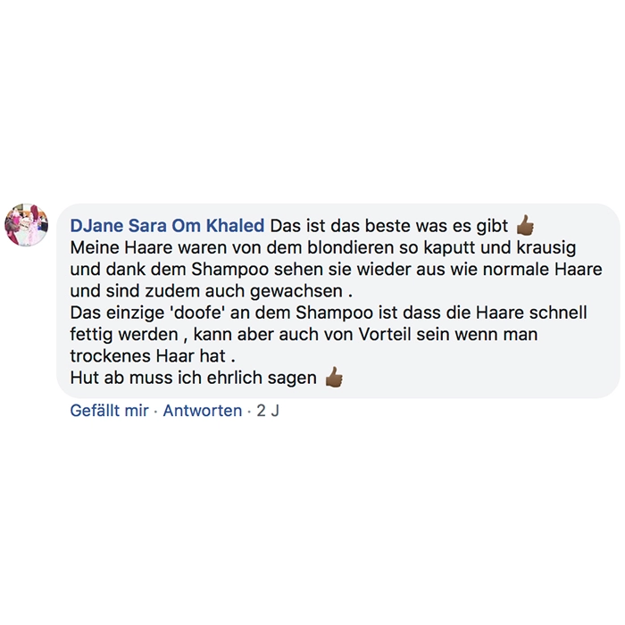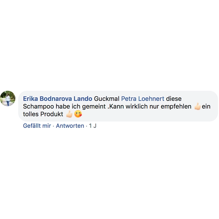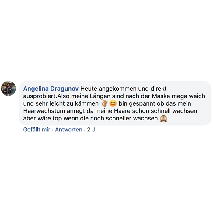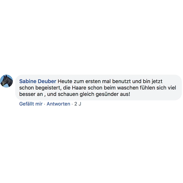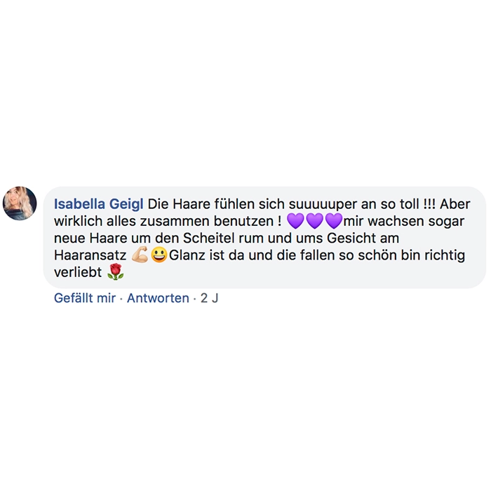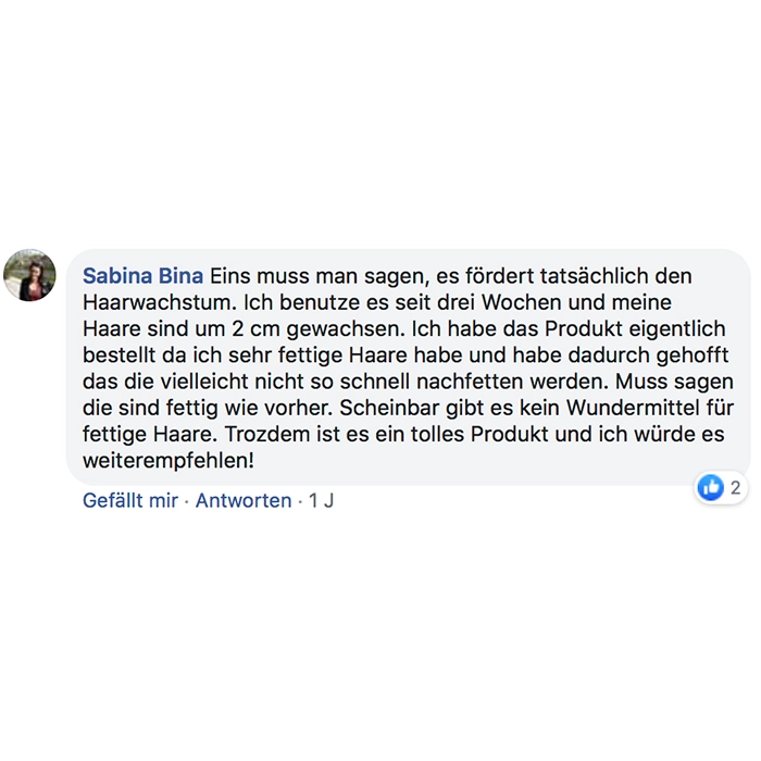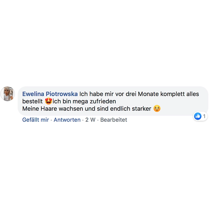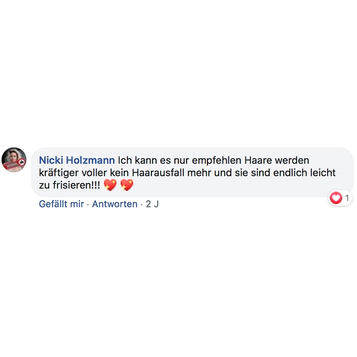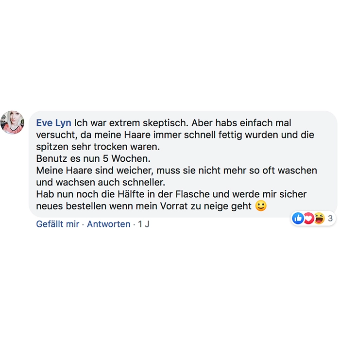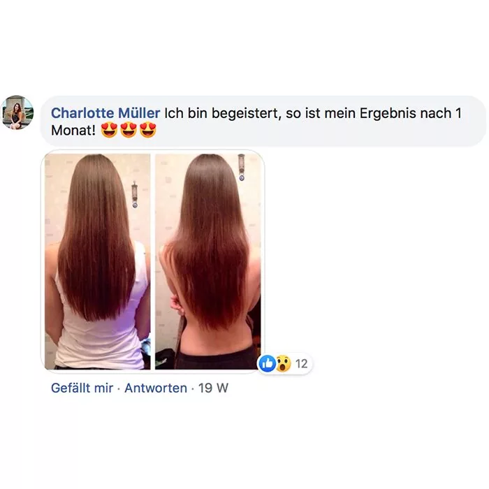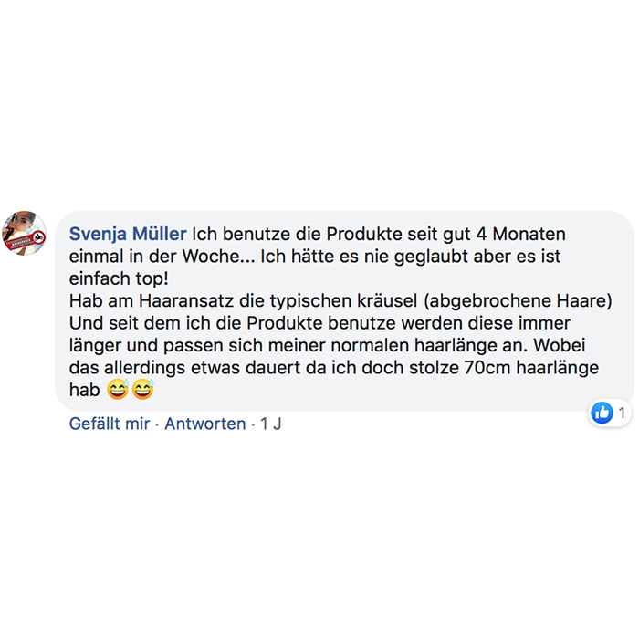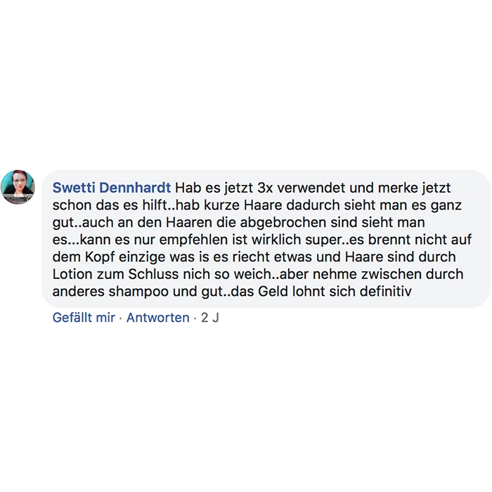 Die Wirkstoffe Sojaprotein, Vitamin B6, Keratin, Eierschalenextrakt und Chitin nähren die Haarfollikel, fördern das Haarwachstum, verbessern die natürliche Glätte und das natürliche Volumen und helfen, Spliss zu vermeiden.