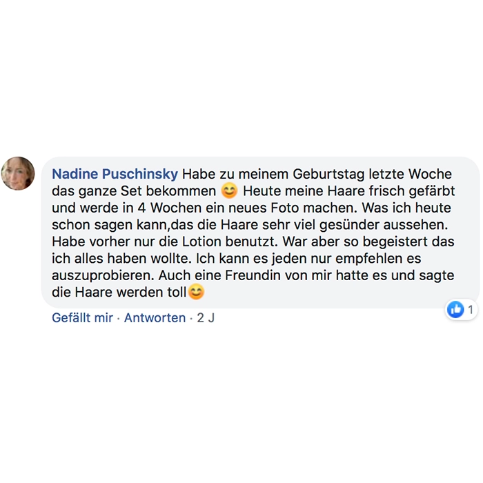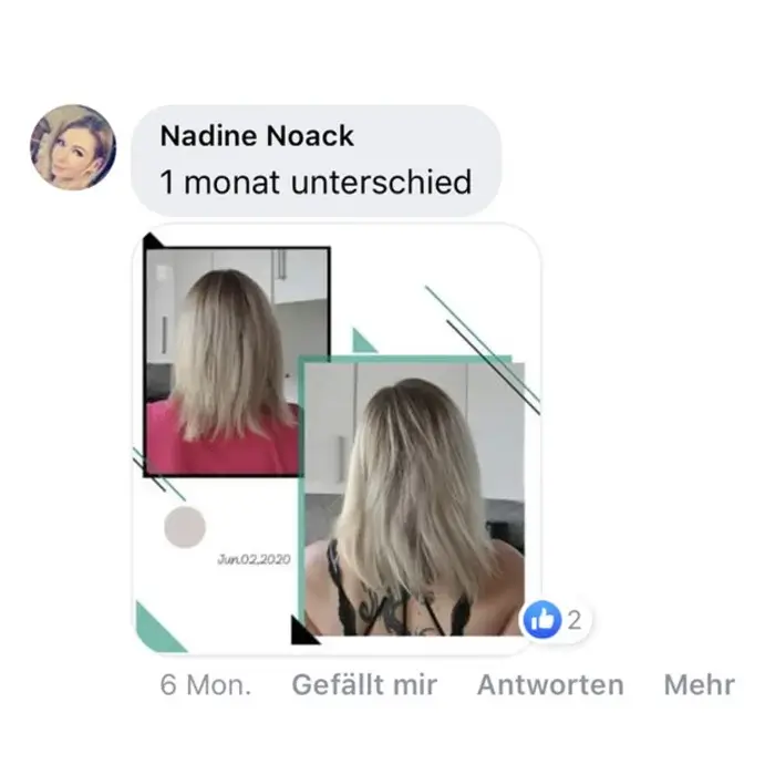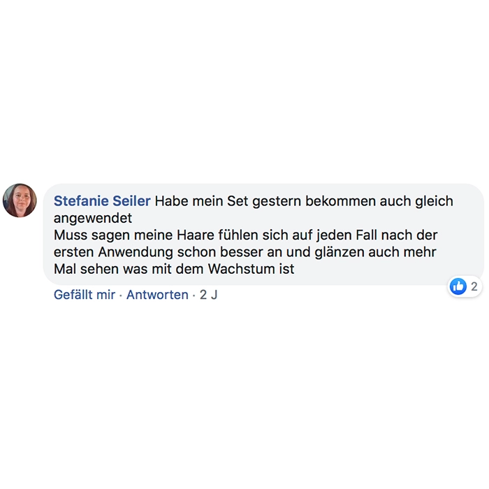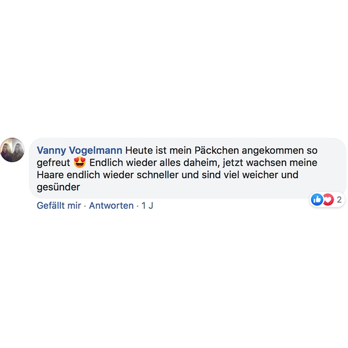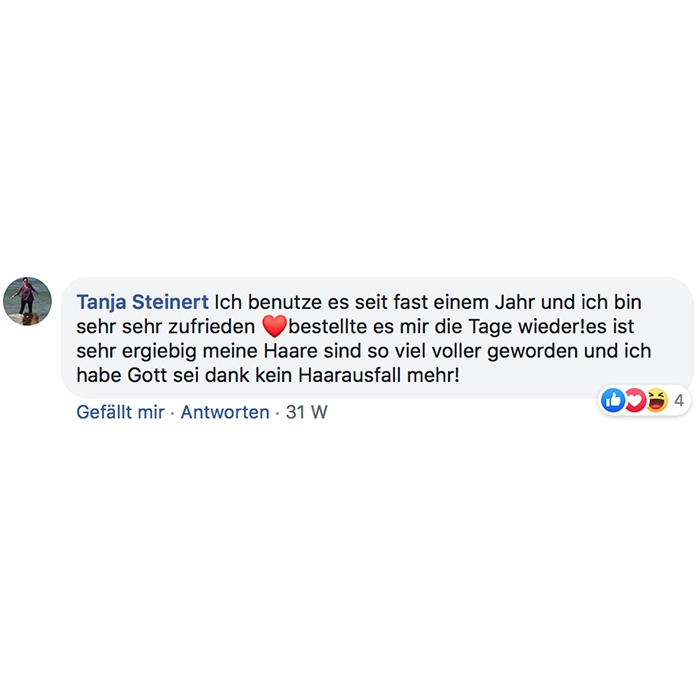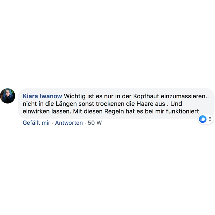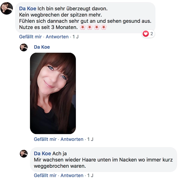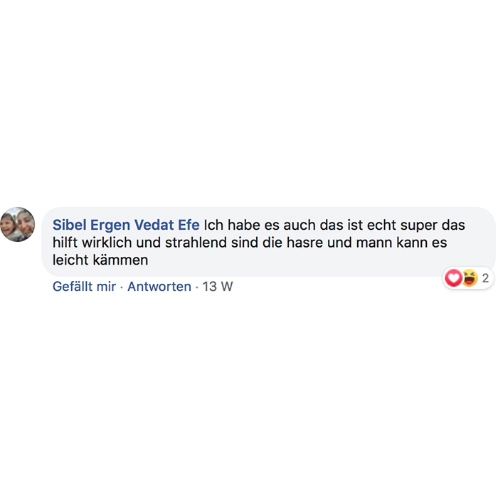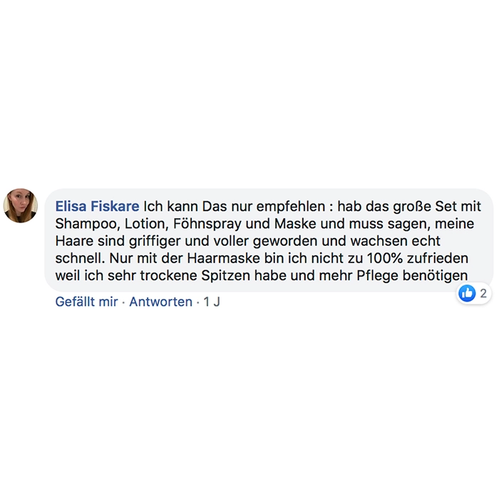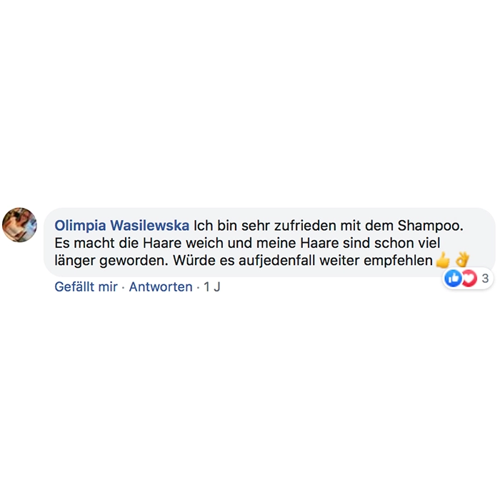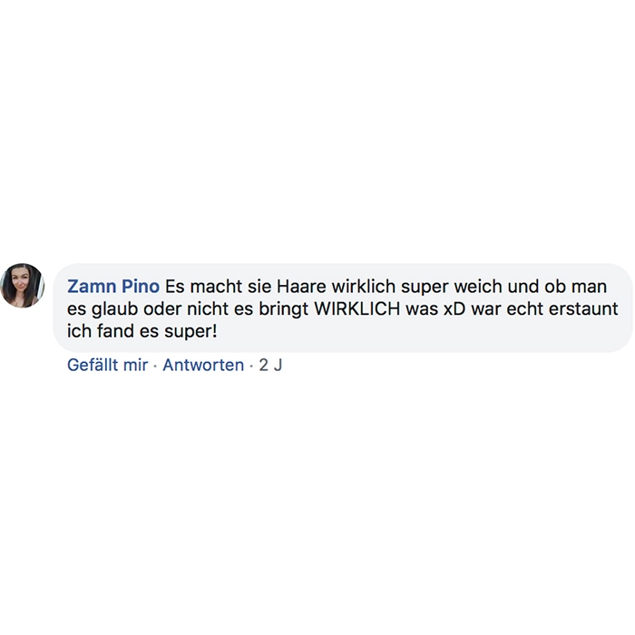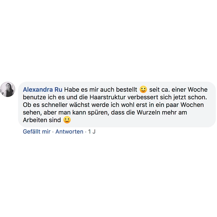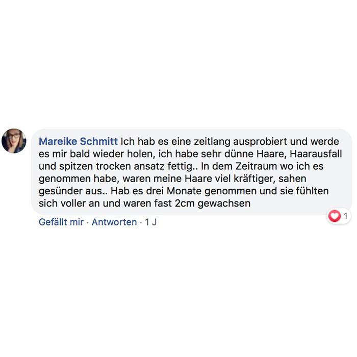 Die Wirkstoffe Sojaprotein, Vitamin B6, Keratin, Eierschalenextrakt und Chitin nähren die Haarfollikel, fördern das Haarwachstum, verbessern die natürliche Glätte und das natürliche Volumen und helfen, Spliss zu vermeiden.