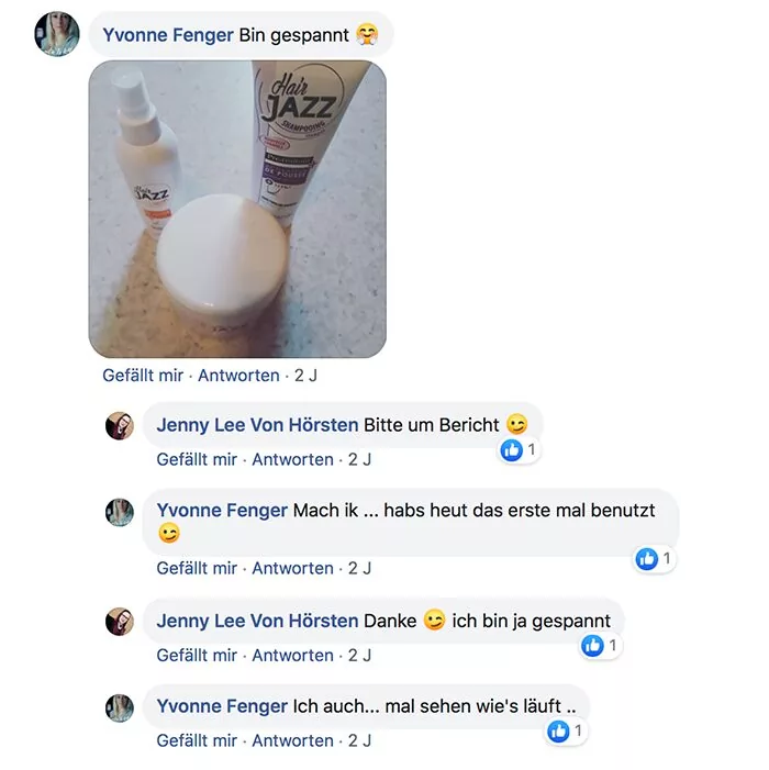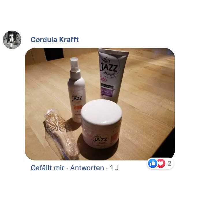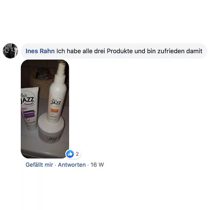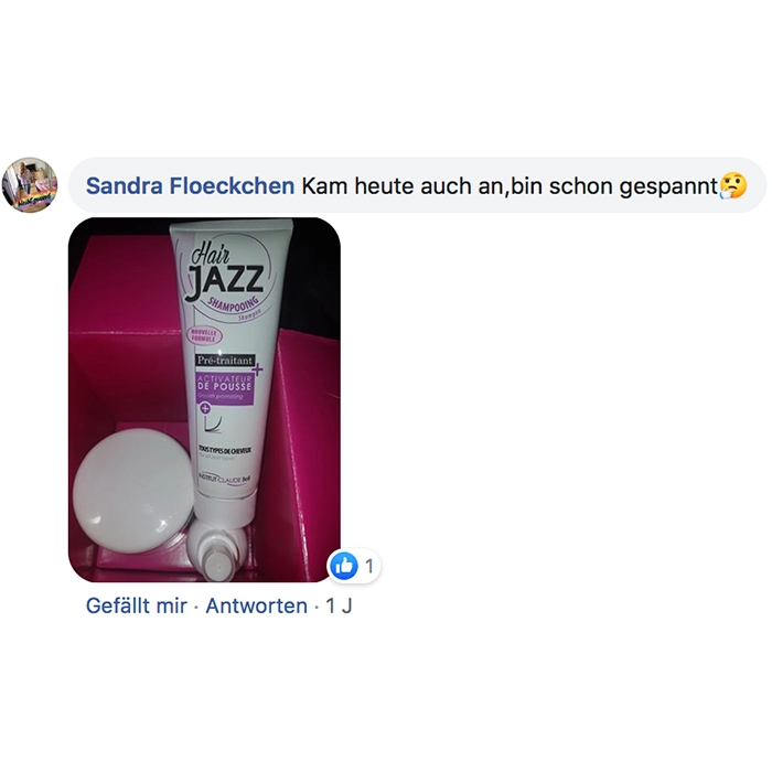 Das Untersuchungslabor SPINCONSO Unit der französischen Firma SPINCONTROL hat im Juni 2017 nach den Erfahrungen und Bewertungen der Testpersonen, eine Studie der Wirksamkeit der Produkte von HAIR JAZZ durchgeführt. Es wurde an 106 Frauen aus unterschiedlichen Altersgruppen mit unterschiedlichen Haarfarben und Haarlängen analysiert. Dauer der Untersuchung – 28 Tage.